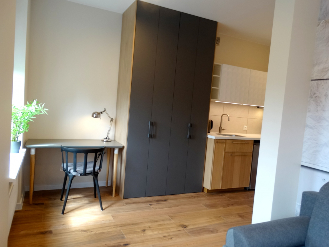 Apartament dwuosobowy, w mieszkaniu składającym się z trzech samodzielnych mini apartamentów na 4 piętrze odnowionej kamienicy w centrum miasta z zamkniętym podwórkiem na którego teren wjeżdża się przez sterowaną pilotem bramę. Zlokalizowane jest w samym centrum Łodzi - blisko Nowego Centrum Łodzi EC1, placu Dąbrowskiego, Teatru Wielkiego.