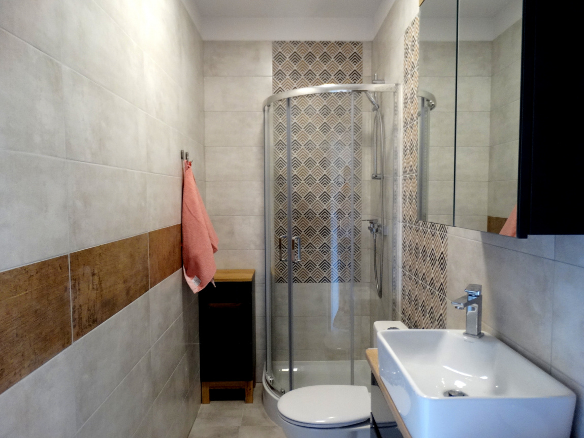 Mieszkanie zostało wykończone z dbałością o najdrobniejsze detale. Łączna powierzchnia wynosi 55 m. Trzy apartamenty każdy z oddzielną łazienką oraz aneksem kuchennym.